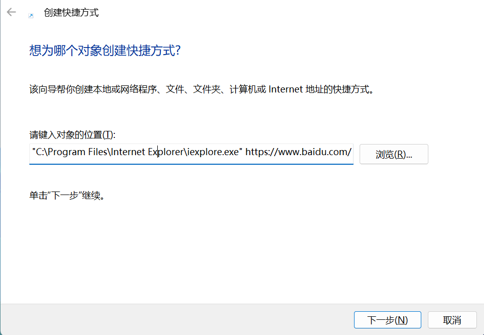 2 将此行代码复制粘贴到输入框 "C:\Program Files\Internet Explorer\iexplore.exe" https://www.baidu.com/#ie={inputEncoding}&wd=%s -Embedding